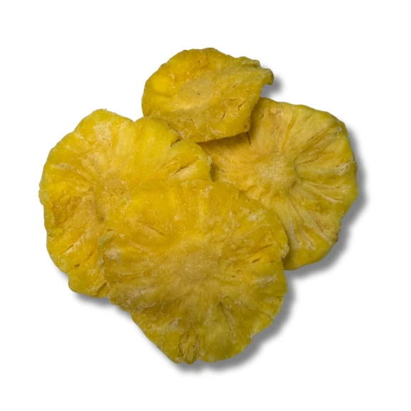 Rico em fibras e vitaminas, o abacaxi desidratado auxilia na digestão, promove saciedade e é uma excelente alternativa para substituir doces industrializados. Pode ser consumido puro como snack, adicionado a granolas, saladas, sobremesas ou utilizado em receitas doces e salgadas, trazendo um toque exótico e refrescante.