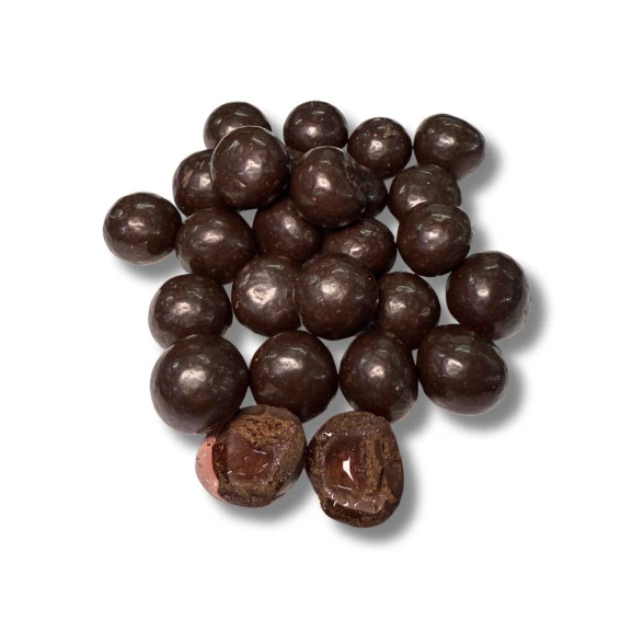 Produzida com chocolate 70% cacau, a dragee se destaca por sua intensidade e equilíbrio. O alto teor de cacau oferece benefícios como fonte natural de antioxidantes, além de um sabor marcante e menos doce que os chocolates tradicionais. No interior, o licor de vinho complementa o chocolate com um aroma suave, notas frutadas e uma cremosidade irresistível. O resultado é um doce elegante, que combina textura crocante, recheio macio e um final delicadamente alcoólico.