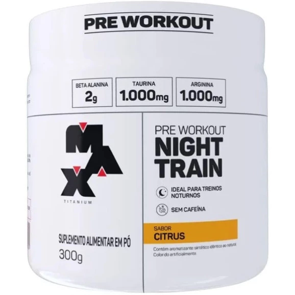 O Pre Workout Night Train da Max Titanium é um pré-treino formulado para quem busca elevar ao máximo o desempenho físico, a energia e o foco durante os treinos mais intensos. Este suplemento é ideal para atletas e praticantes de musculação que desejam treinar com mais disposição, força e explosão.